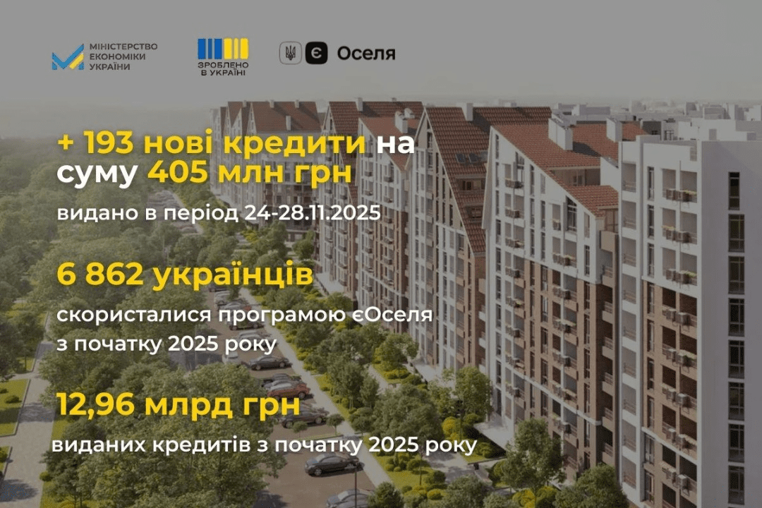 У 2025 році програма «єОселя» видала понад 6,8 тис. доступних іпотек на суму 12,96 млрд грн, зберігаючи попит на пільгове житло серед українців.