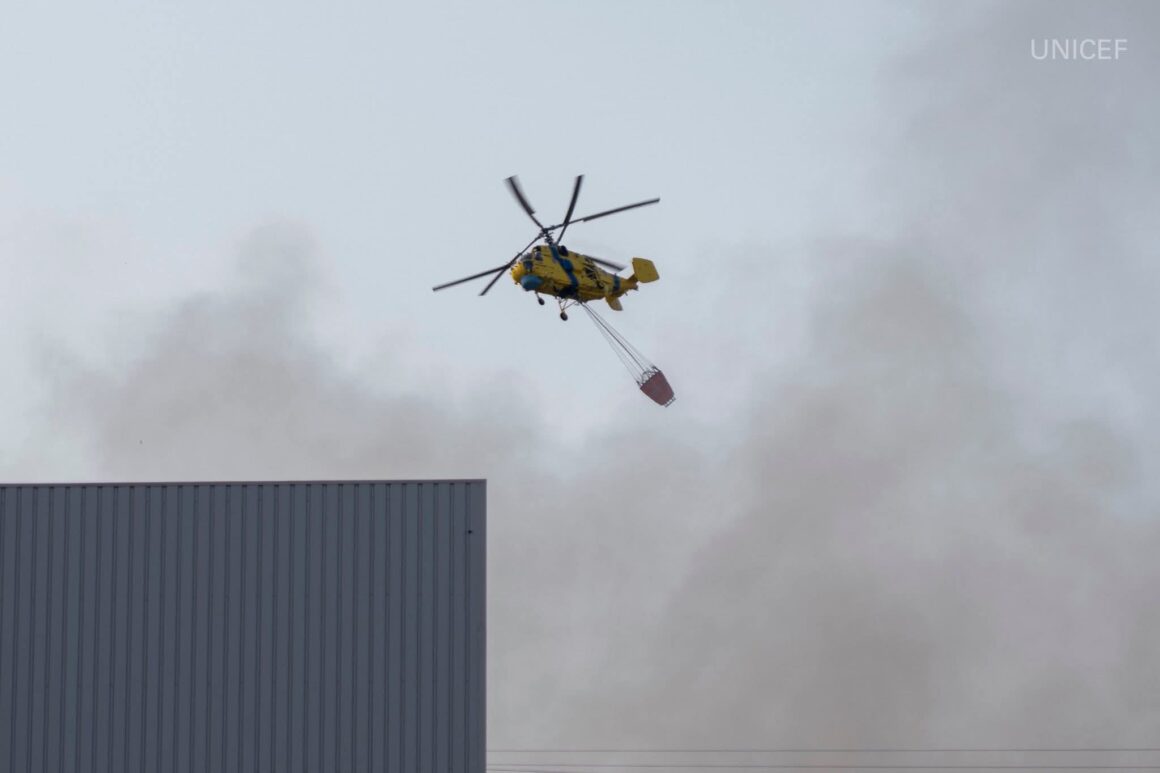 Після атаки РФ на Київ у районі Оболоні спалахнула масштабна пожежа, два вертольоти Ка-32 авіації ГУР, були залучені до ліквідації наслідків.