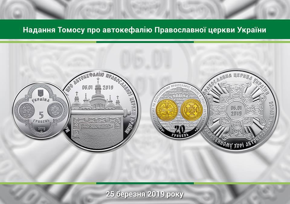 Національний банк створив пам’ятні монети з нагоди надання Томосу про автокефалію Православної церкви України. Їх відкарбував український Монетний двір.Монети продовжують серію “Духовні скарби України”Томос, текст якого ухвалено архієрейським синодом Вселенського патріархату, офіційно затверджує канонічний автокефальний статус Православної церкви України як однієї з 15 помісних православних церков.У обіг ці пам’ятні монети будуть уведені вже завтра – 25 березня 2019 року.