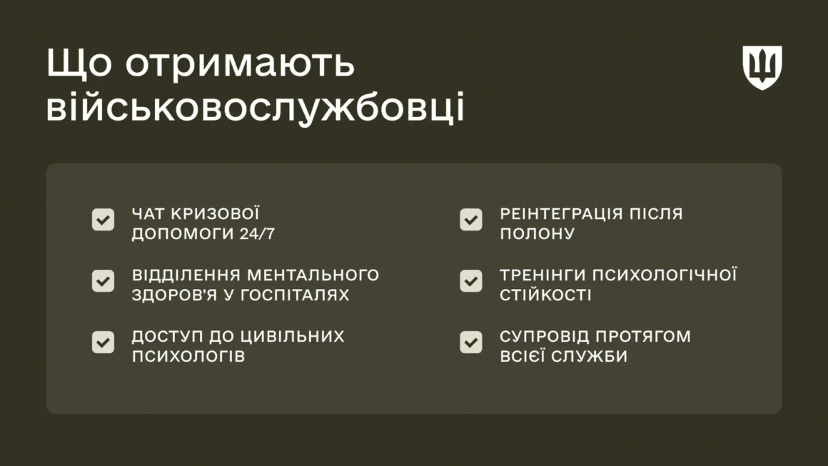 Міноборони України затвердило план дій до 2027 року для створення системи збереження психічного здоров’я військовослужбовців.