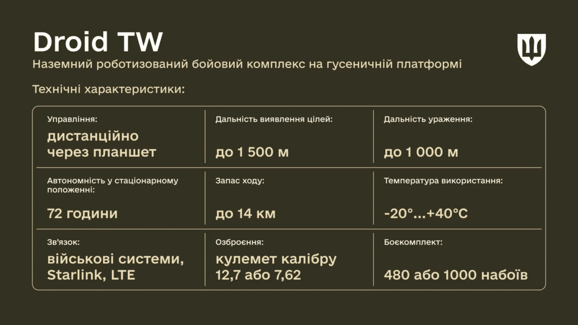 Зазначається, що розробка Droid TW розпочалася кілька років тому після запиту українських захисників. Вони потребували зменшення ризиків для особового складу з одночасним забезпеченням точного та автономного ведення бою.